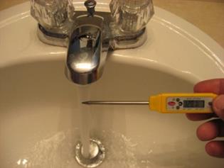 People are often complaining about hot water temperature is too hot. Actually a real temperature is to be measured by a thermometer at a nearby hot water tap when hot water is flowing. People hand's feeling isn't considered as accurate.